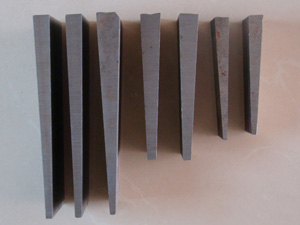 斜墊鐵的規(guī)格以及精度要求:斜墊鐵一般沒有具體規(guī)格,一般是按設(shè)備重量設(shè)計圖紙,定做加工。但常用的規(guī)格有100*50;120*60;120*80;150*80;160*80;200*100;200*120;200*150;240*120;300*150;等。斜墊鐵精度一般為△12.5,為一般粗糙精度斜墊鐵,△6.3為中級精度斜墊鐵,△3.2為高級精度斜墊鐵,△0.8為精密斜墊鐵(磨床磨削平面而成)。斜墊鐵在使用中安設(shè)備的精密度選擇墊鐵的精度。并非精度高的斜墊鐵就適合所有設(shè)備。應(yīng)該按實際需要合理選擇斜墊鐵。以達到使用斜墊鐵的 初節(jié)約成本的目的。