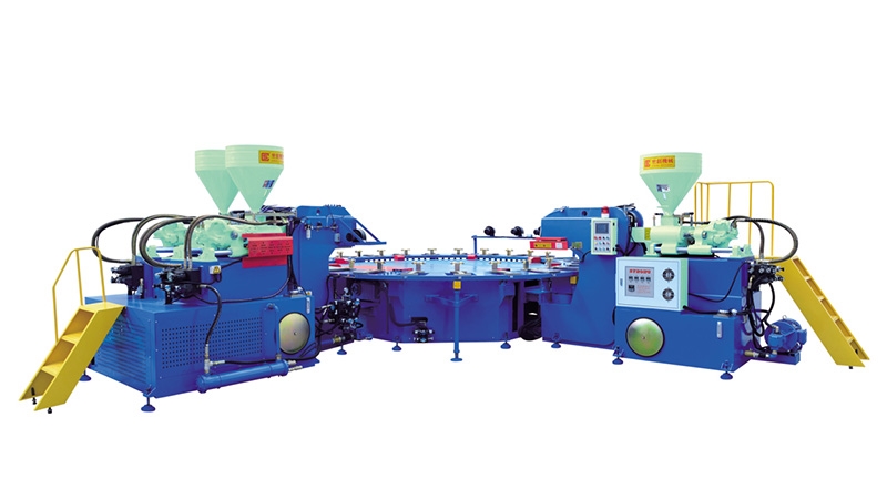 1.該機臺可生產高彈性、超輕發泡pvc拖鞋、連幫注射休閑鞋及運動鞋。