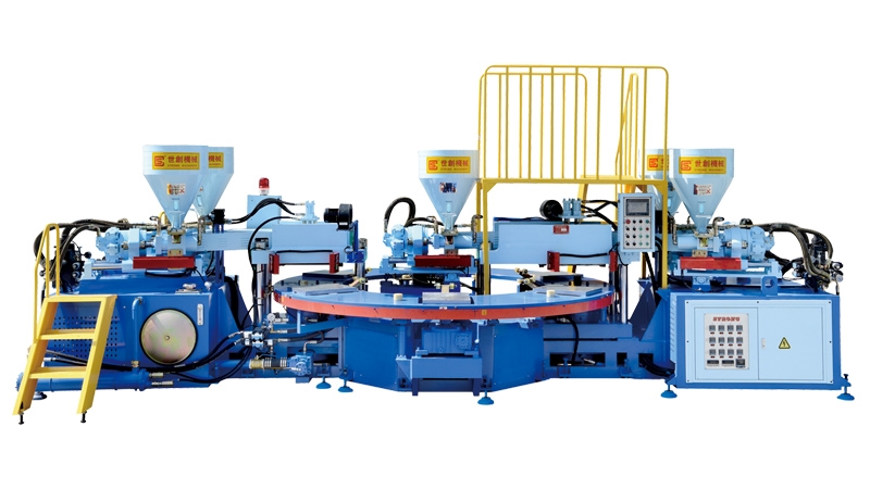 SC-612-4-100T/612-5-100T全自動(dòng)回轉(zhuǎn)式四色幫帶臥式射出成型機(jī)1.該機(jī)臺(tái)配備多功能操作系統(tǒng),可生產(chǎn)單色、雙色及三色等不同顏色的pvc鞋帶,也可生產(chǎn)童鞋鞋底。